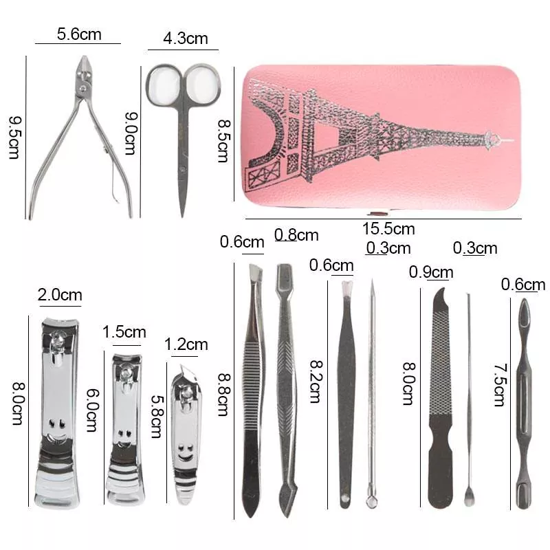 14dbs, beleértve a körömvágókat, a körömfájlt, a fülhártyát, az ollót |