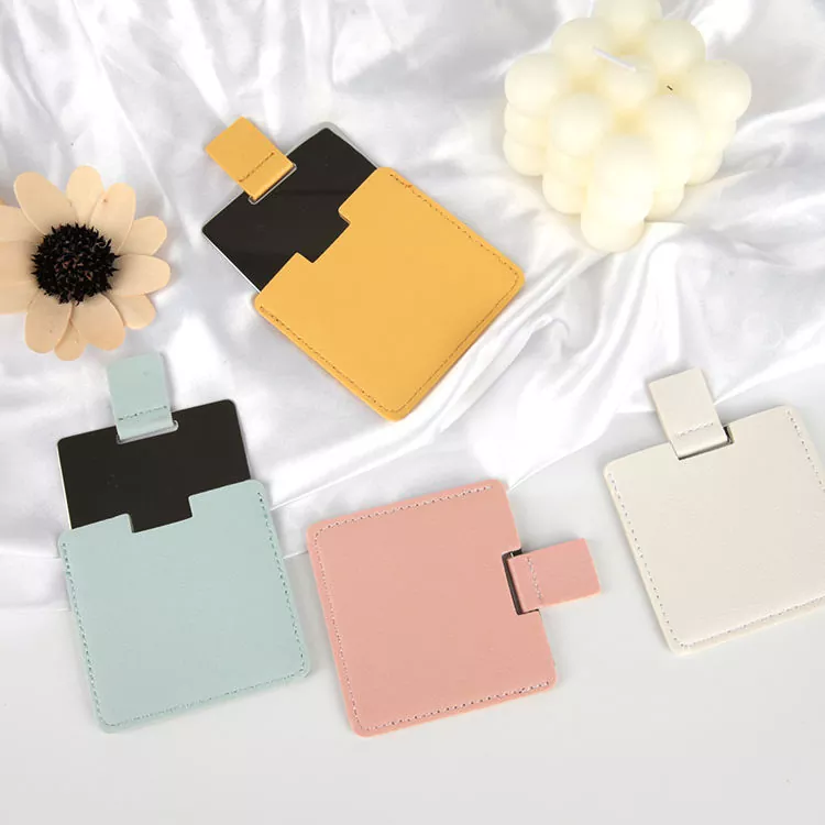 Ez a hitelkártya méretű zsebtükör puha PU bőr borítással és törésálló rozsdamentes acél felülettel rendelkezik. Vékony, hordozható kialakítása könnyen elfér pénztárcában vagy táskában, így ideális az útközbeni javításokhoz. A személyre szabható logó és színek tökéletessé teszik ajándékokhoz vagy márkaépítéshez.