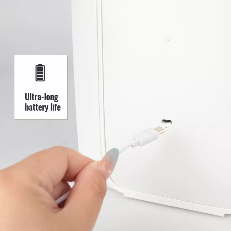 A beépített újratölthető akkumulátorral működő tükör támogatja az USB-C gyorstöltést, és rendkívül hosszú akkumulátor-élettartamot kínál a hosszabb használathoz. Nincs szükség gyakori újratöltésre, így megbízható mindennapi otthoni használatra és hosszú utakra is. Az energiatakarékos LED dizájn az energiafogyasztást is csökkenti.