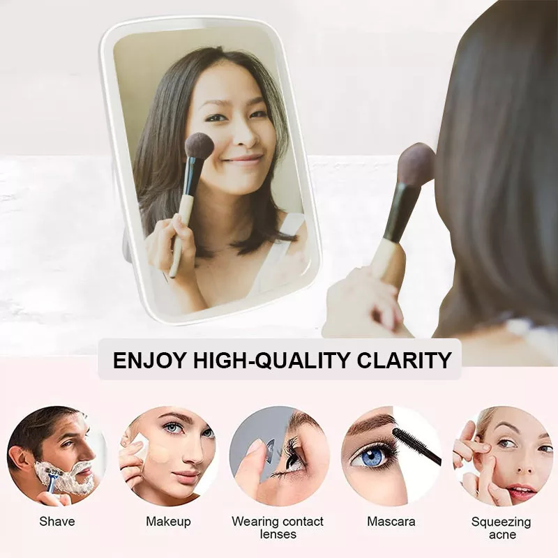 Ez az asztali LED-es sminktükör 3 állítható fénymóddal rendelkezik (hideg, természetes, meleg), hogy megfeleljen a különböző sminkforgatókönyveknek, és élethű megvilágítást biztosít a precíz alkalmazáshoz. 100°-ban állítható állványa rugalmas betekintési szögeket tesz lehetővé, míg a vékony, könnyű kialakítás könnyű hordozhatóságot tesz lehetővé.